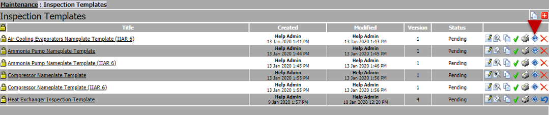 Within the Inspection Builder, for each location you can manage your Inspection Templates that will be used for Mechanical Integrity Inspections against your covered equipment. You can Create, Edit, View, Copy, Print, and Delete these Templates.